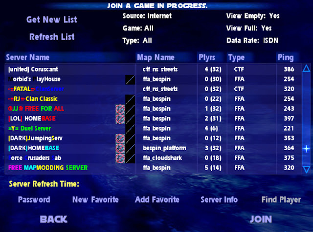 And steam is having a sale on all Starwars games with JK2 and JKA at $4 each, and remeber I have a JK2 server again ( and maybe JKA when we get bored of that ).